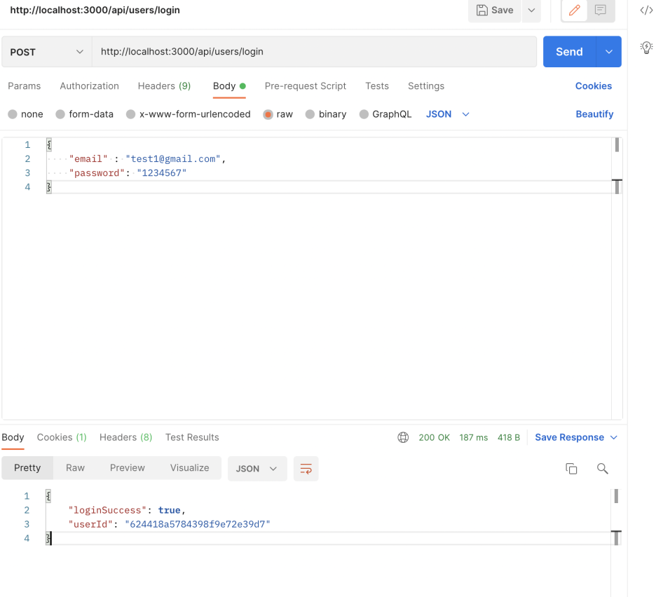 로그인이 정상적으로 수행되고 유저 아이디도 mongoDB와 일치함으로써 bcrypt가 비번에도 영향을 주지 않은채 암호화 된 것을 확인할 수 있다.
